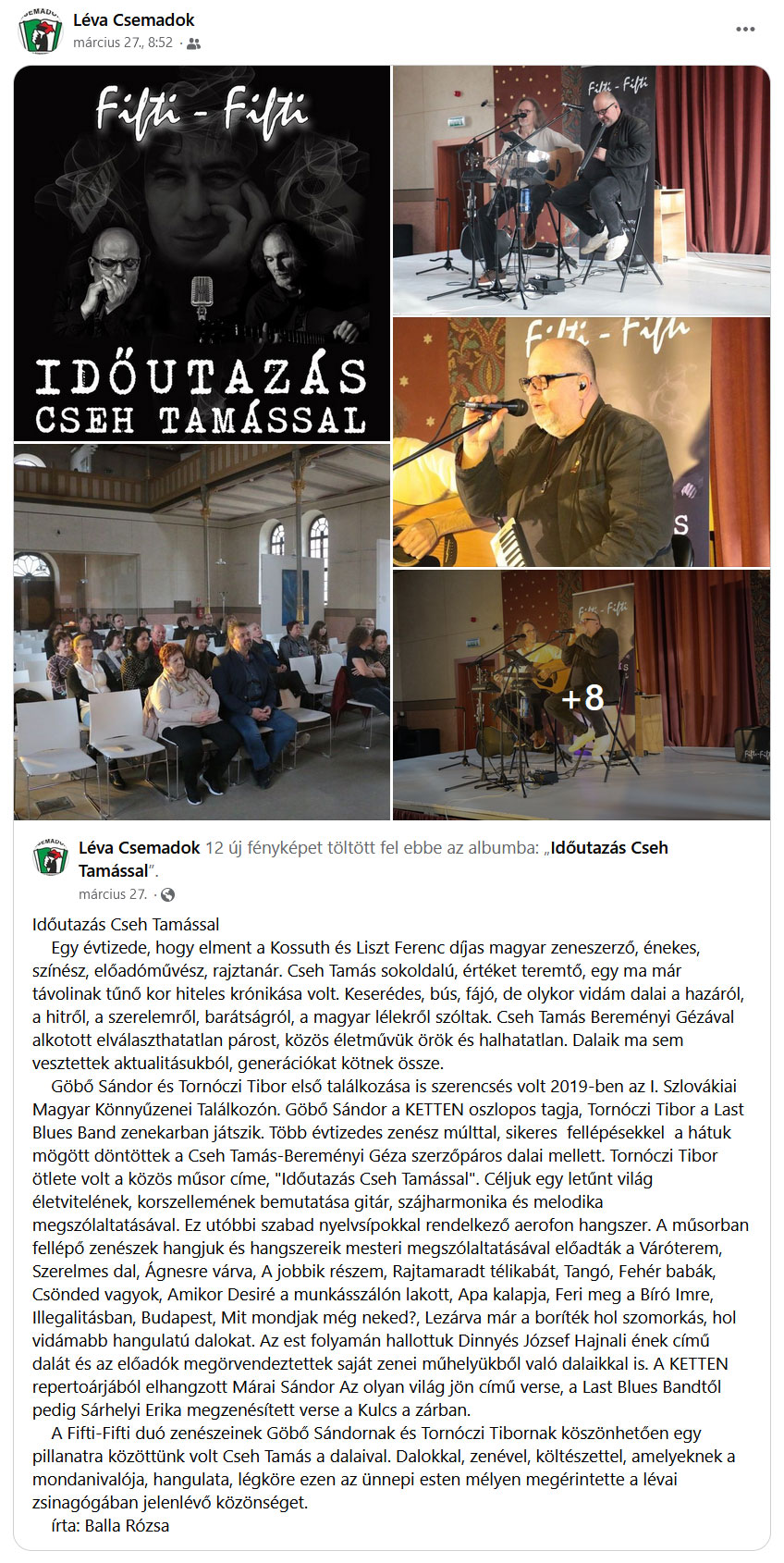 „Időutazás Cseh Tamással a lévai zsinagógában”